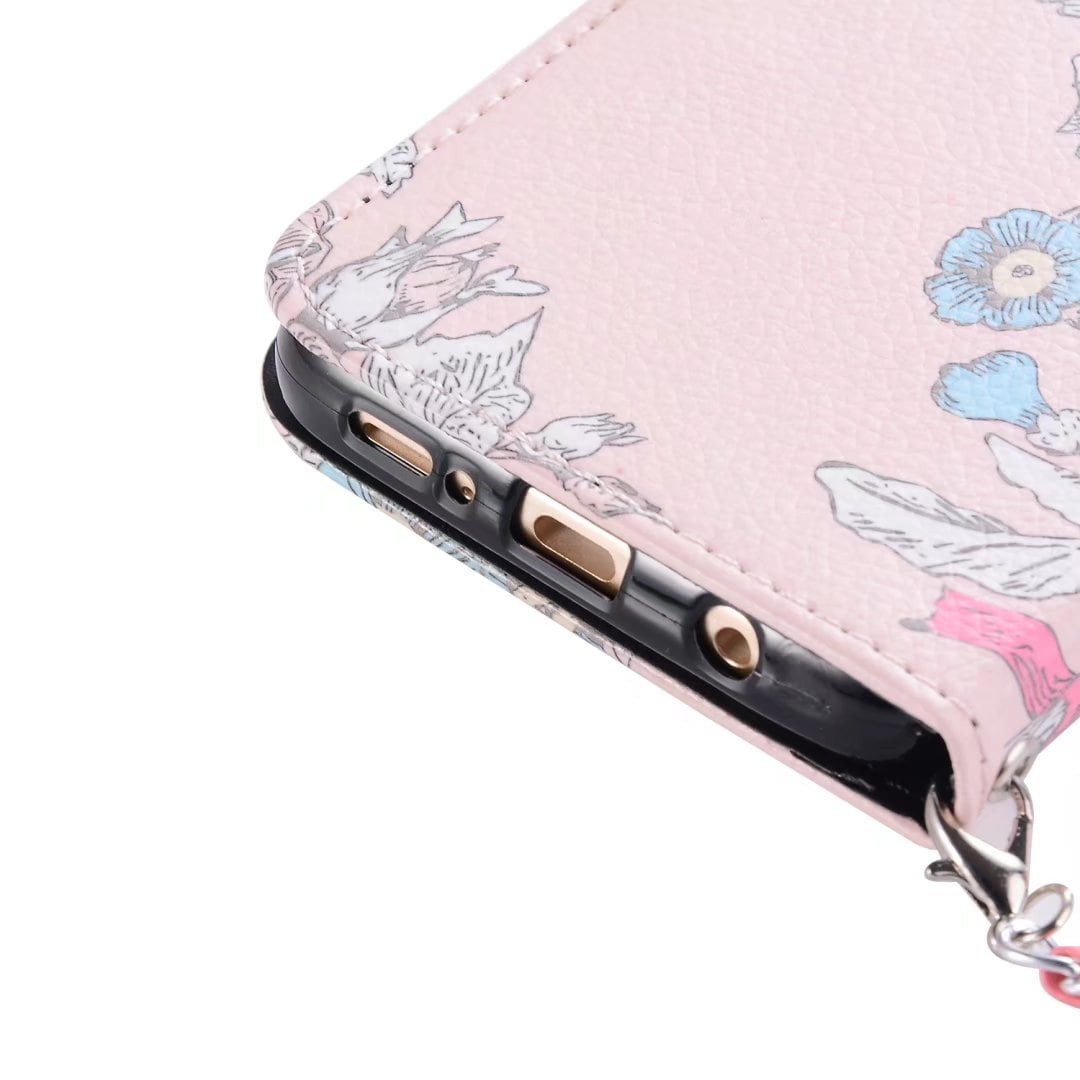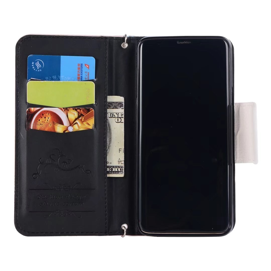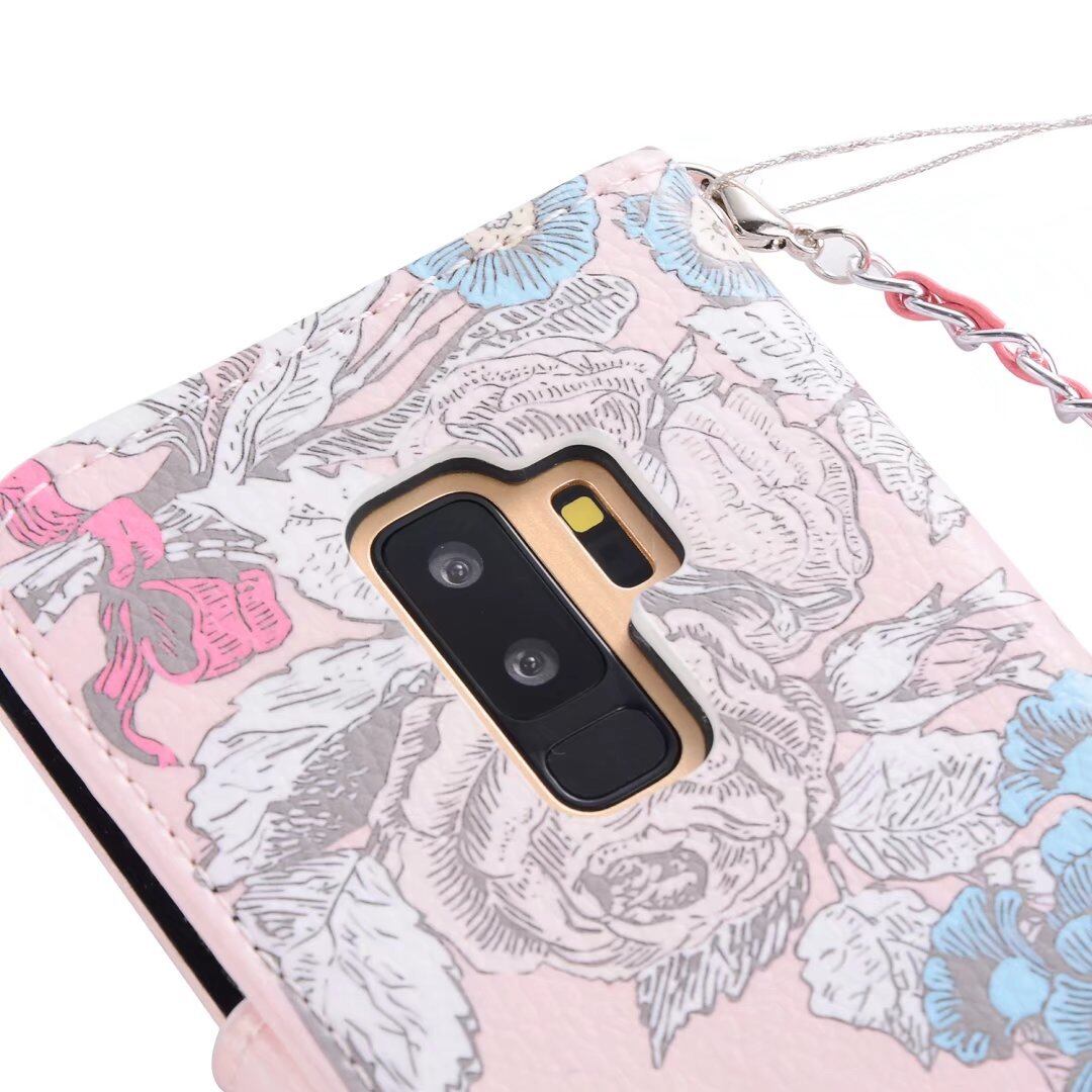 お洒落 薔薇柄 iphoneX GalaxyS9ケース カード収納 ストラップ付き