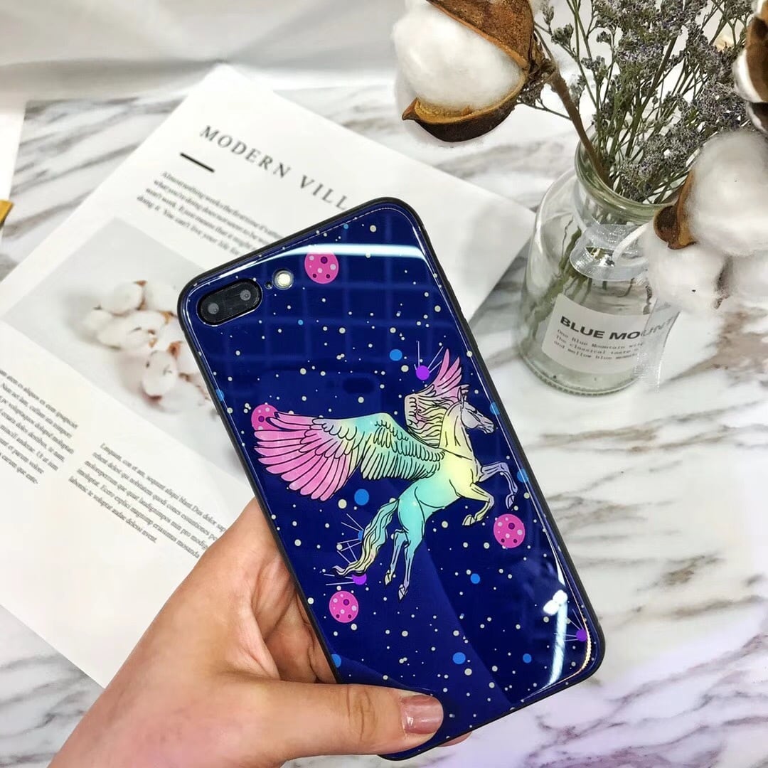 天翔るペガサス iphoneX/8/7ケース 幻想的 強化ガラスケース 美しい