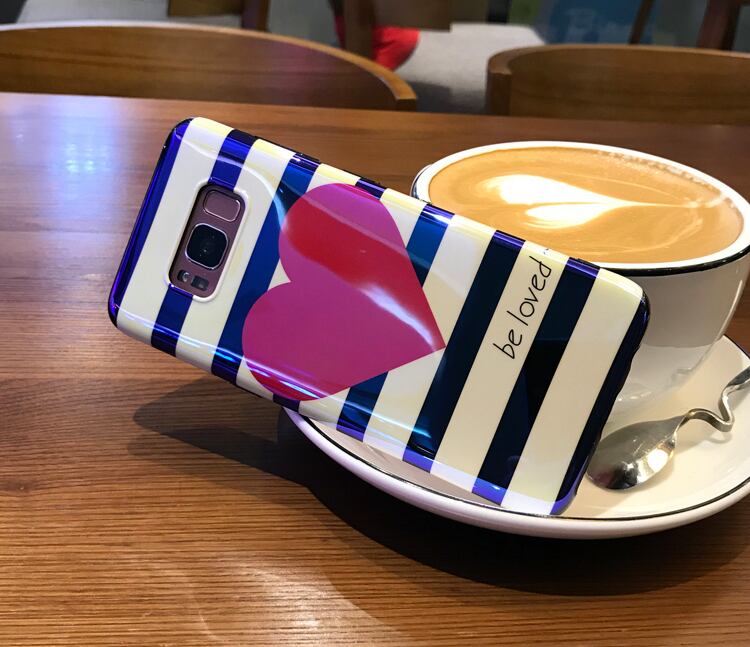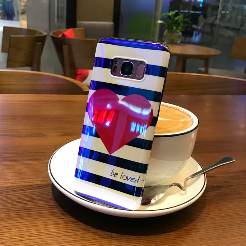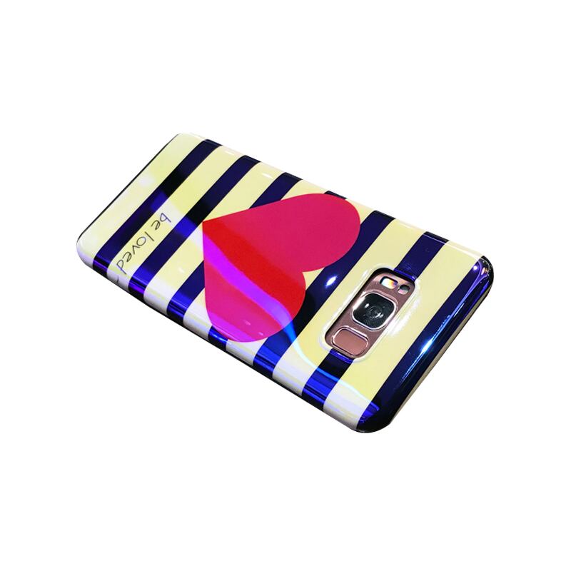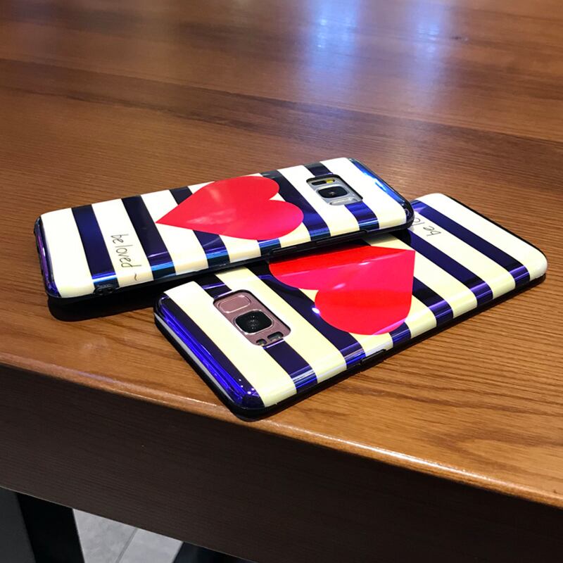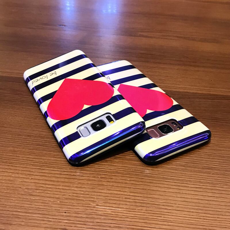 ハートデザイン Galaxy S9 S9+ ケース 縞 ブルーライト 可愛い