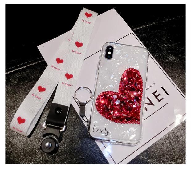 同じなハートデザインのネックストラップ付き、可愛くて大人気です。