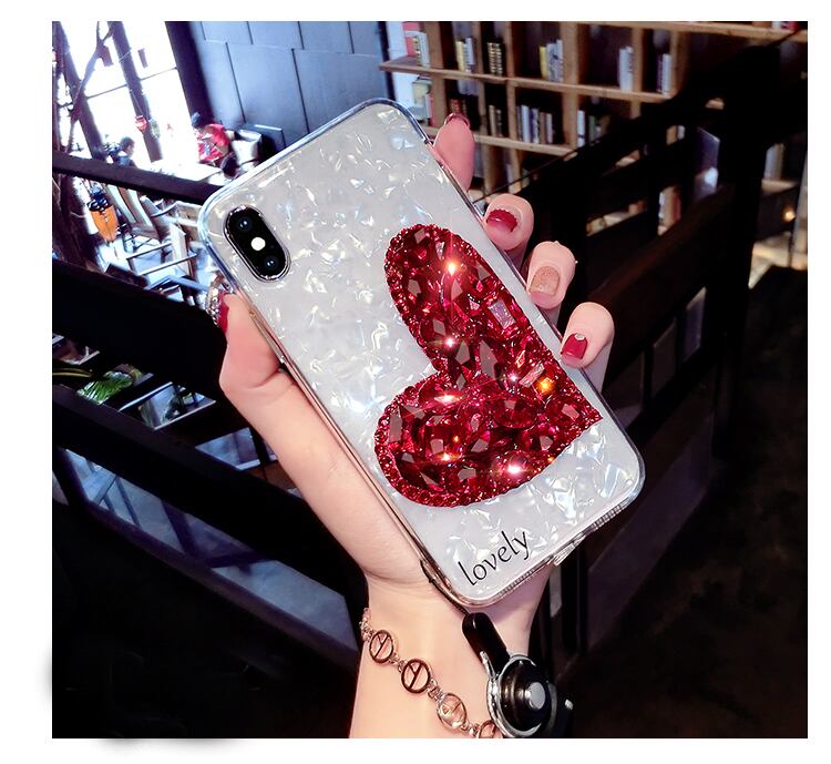 スワロフスキー iPhoneX/8/7ケース ライストーン付き ハート 贅沢