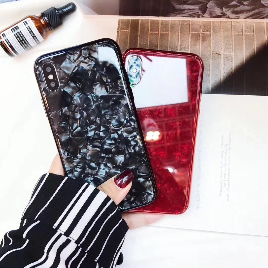 真珠層モチーフ iphone7/8/Xケース 強化ガラスケース カップル用