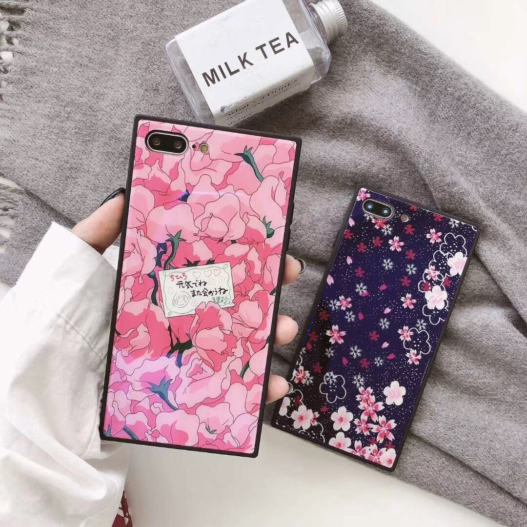 大人 iPhoneX/8ケース 花柄 スクエア型 祭り ファッション小物
