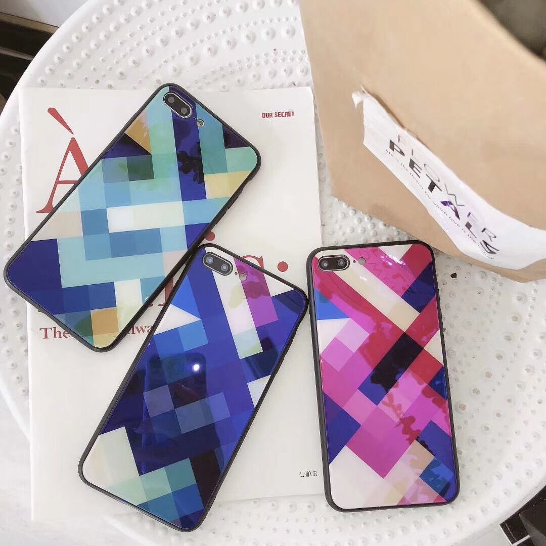 強化ガラス モザイク風 iPhoneX iphone8ケース カラフル ペアケース