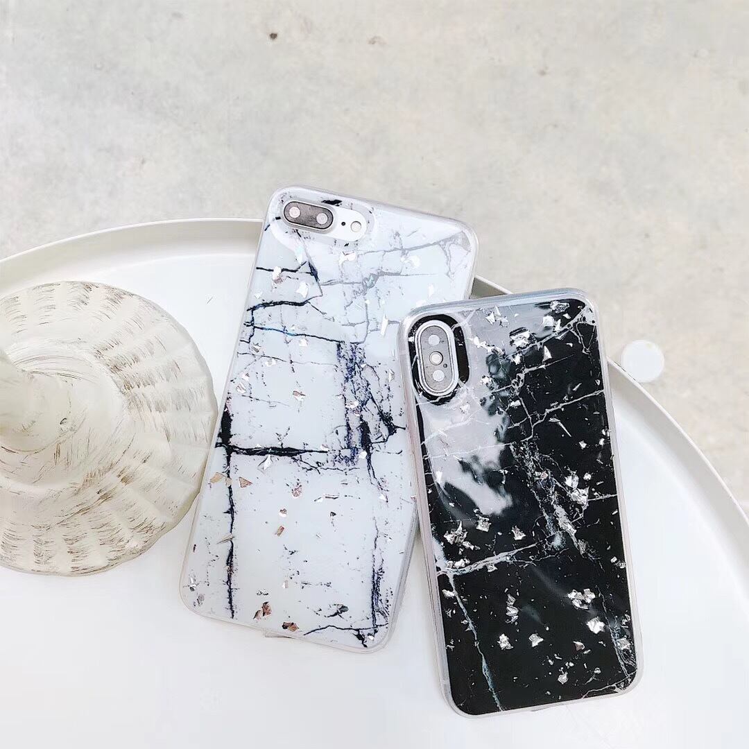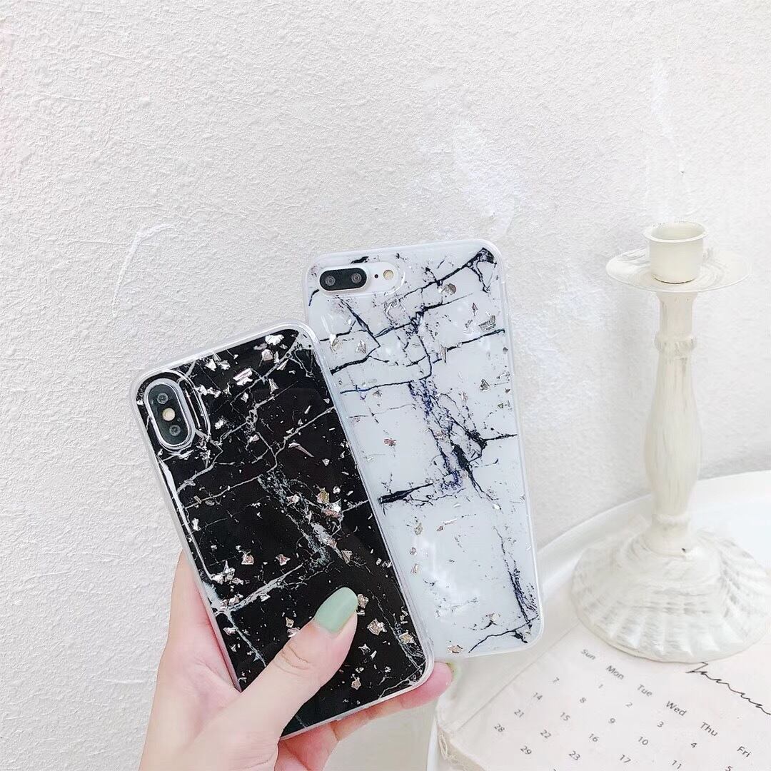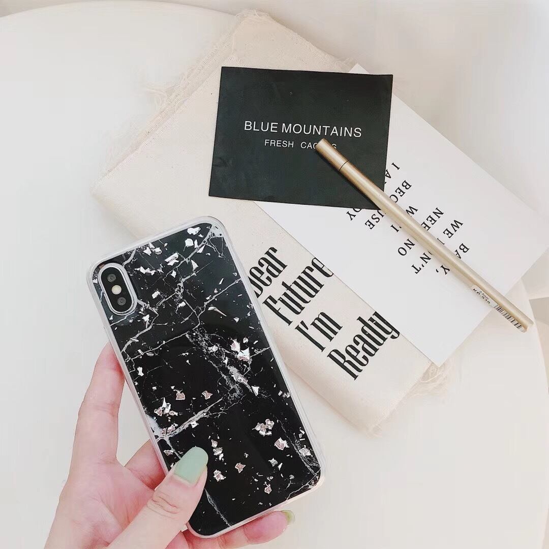 上品 金箔風 iphoneX/8ケース ソフト 大理石柄 ペアケース