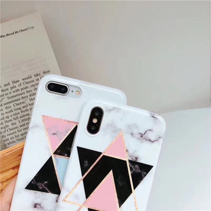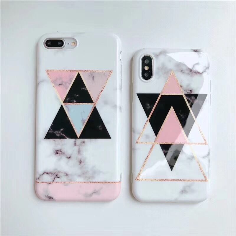 三角形デザイン アメリカ風 iphone6〜Xケース 大理石柄 ソフト