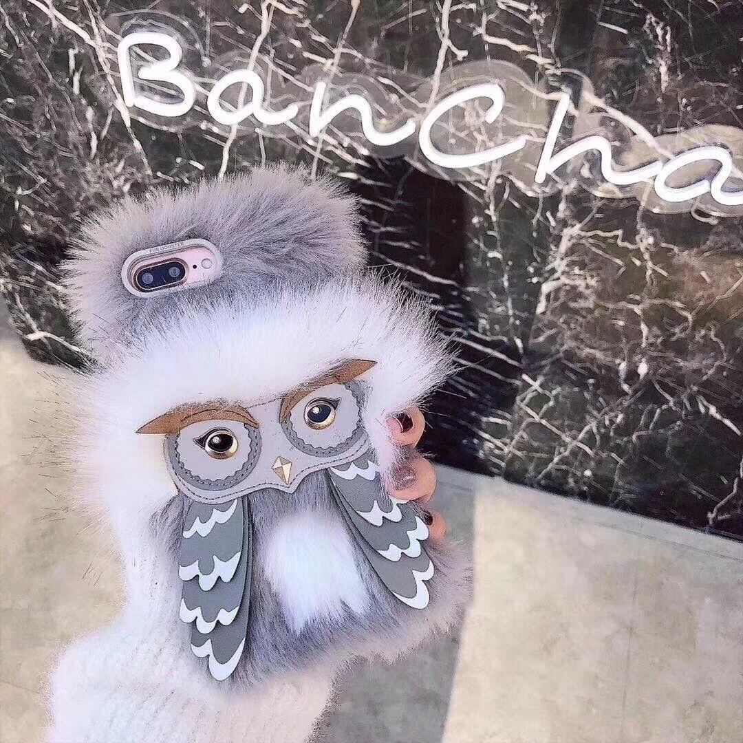 海外スター愛用 iphoneXS/Xケース 動物モフモフ 合成毛 フクロウ