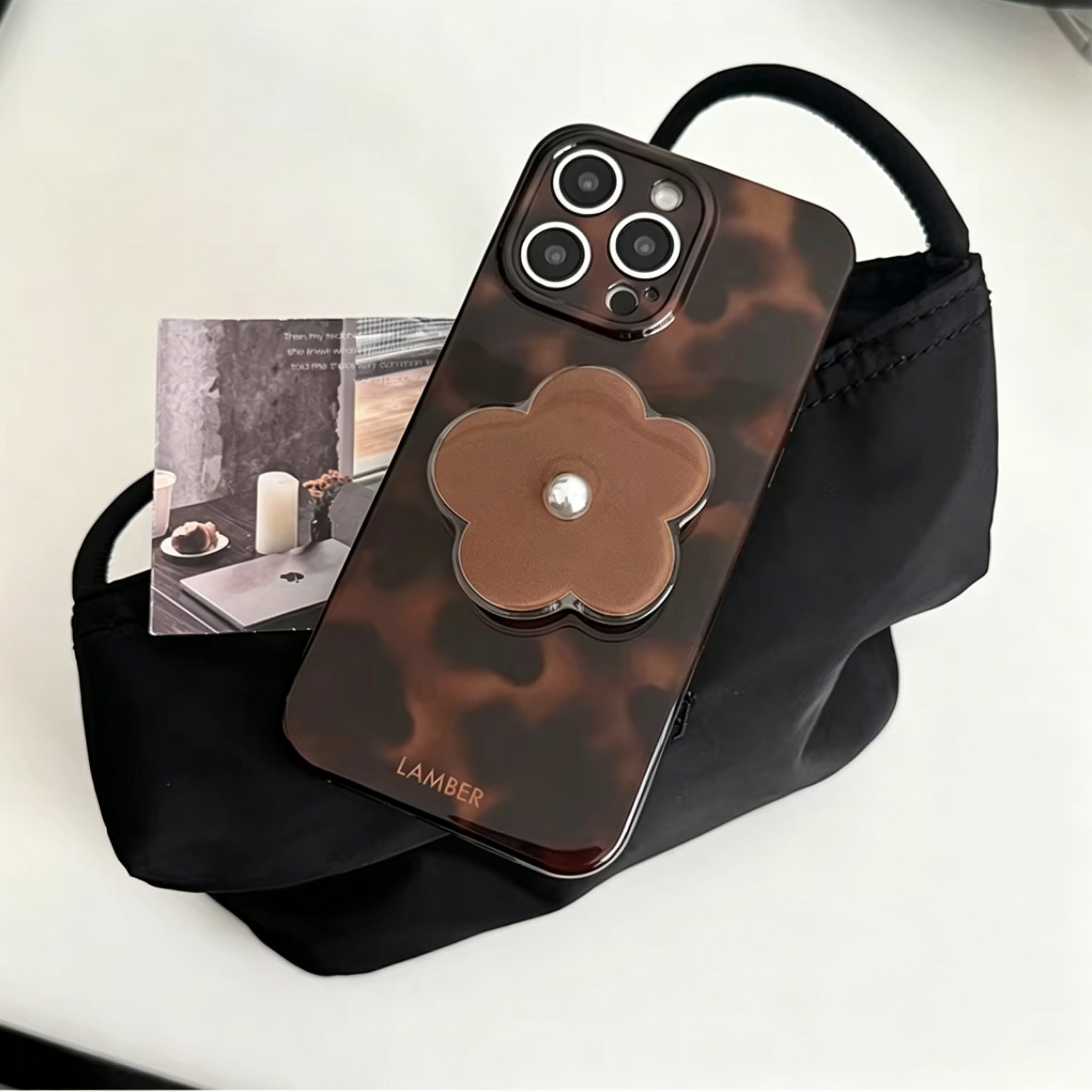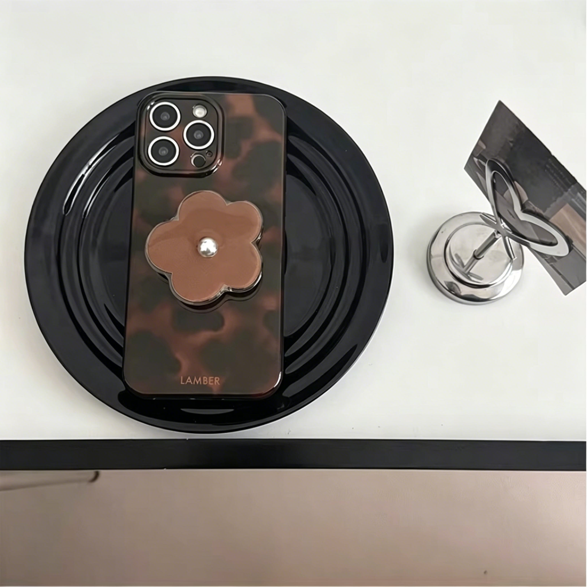フラワー iPhone17 Pro Maxケース べっ甲柄 シェル調 iPhone17 Proケース フラワーモチーフ スマホスタンド iPhone16 15Pro保護ケース スマホグリップ セット iPhone14 13Pro Maxケース 大人向け 高級感 シック エレガント 上品 おしゃれ ギフト