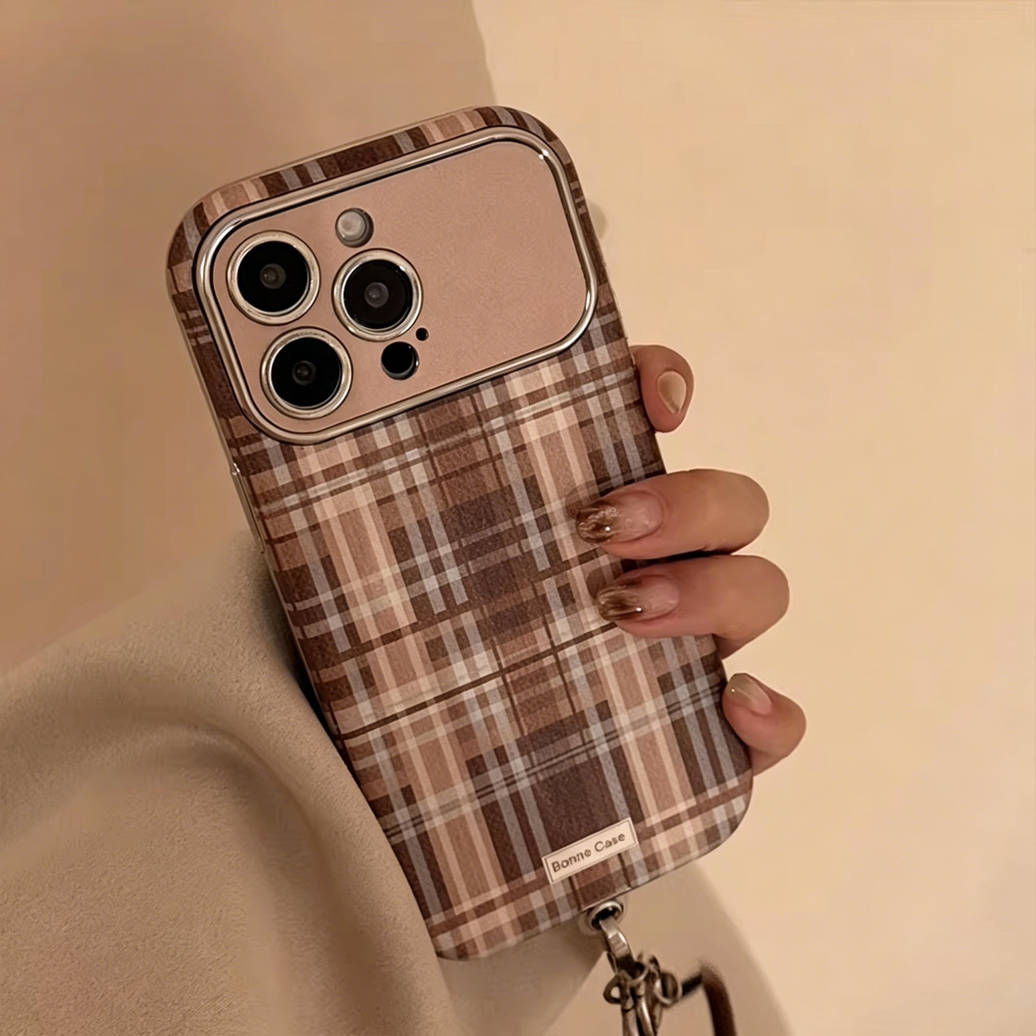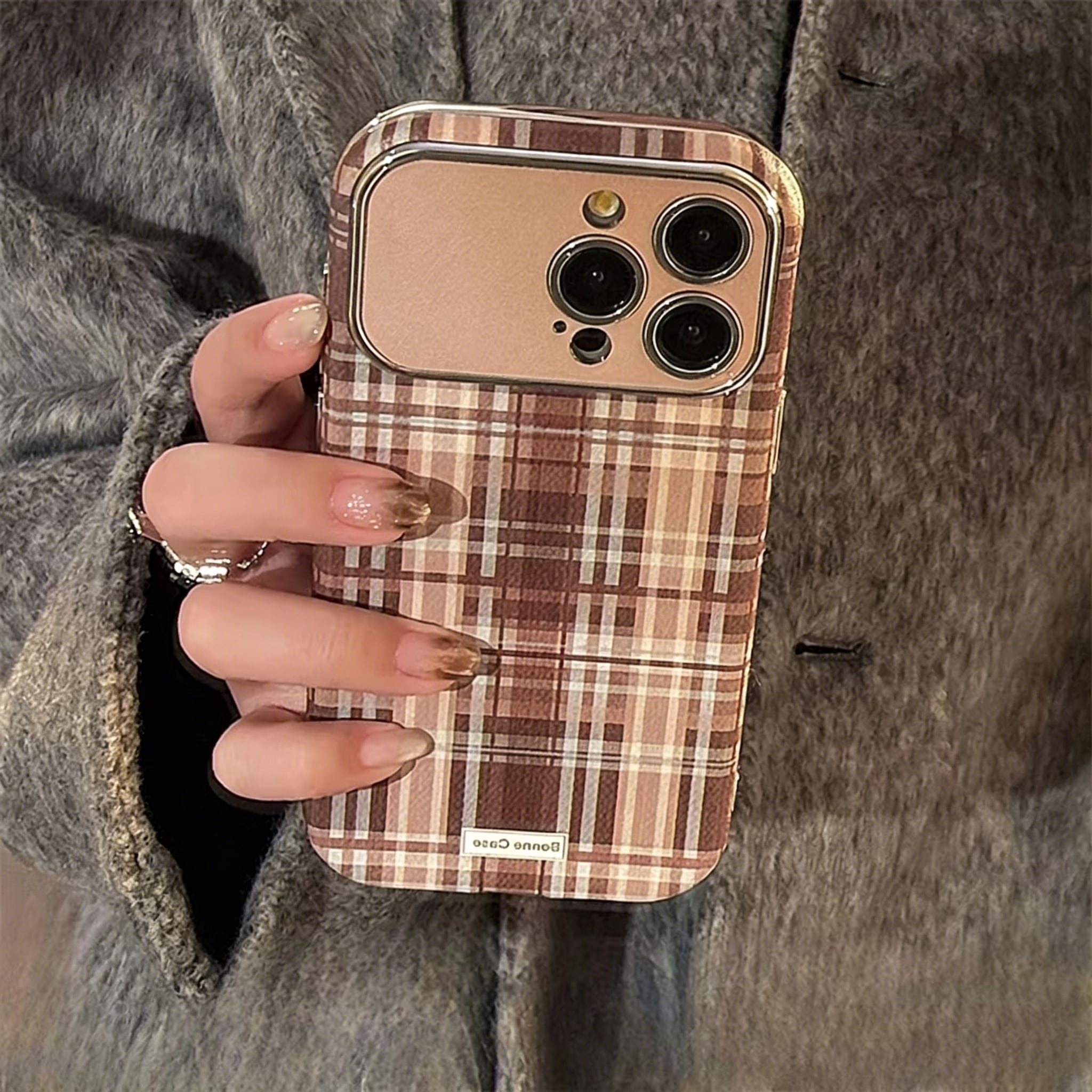 温もりのあるチェック柄とメタリックな質感が融合した、洗練された大人のためのケース。