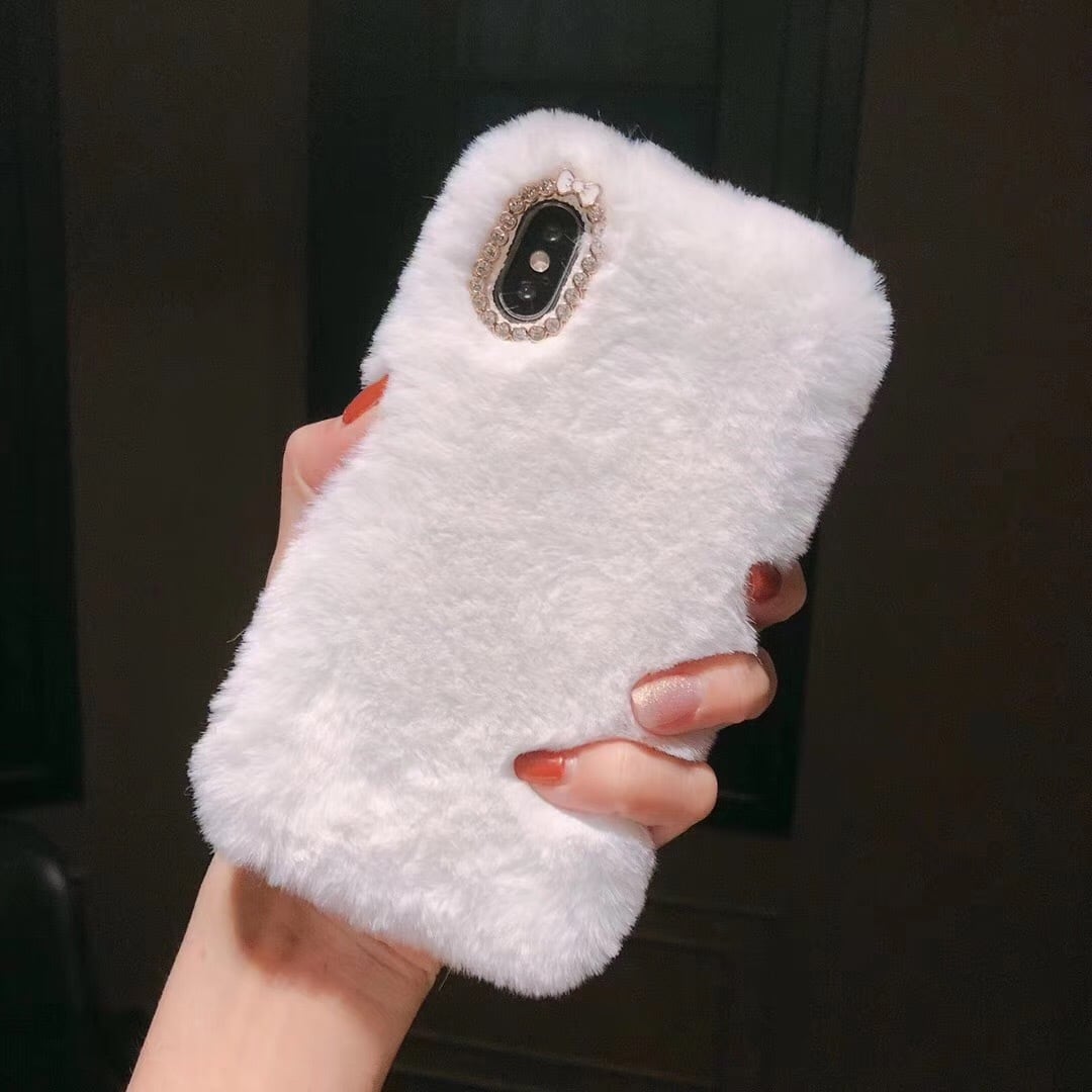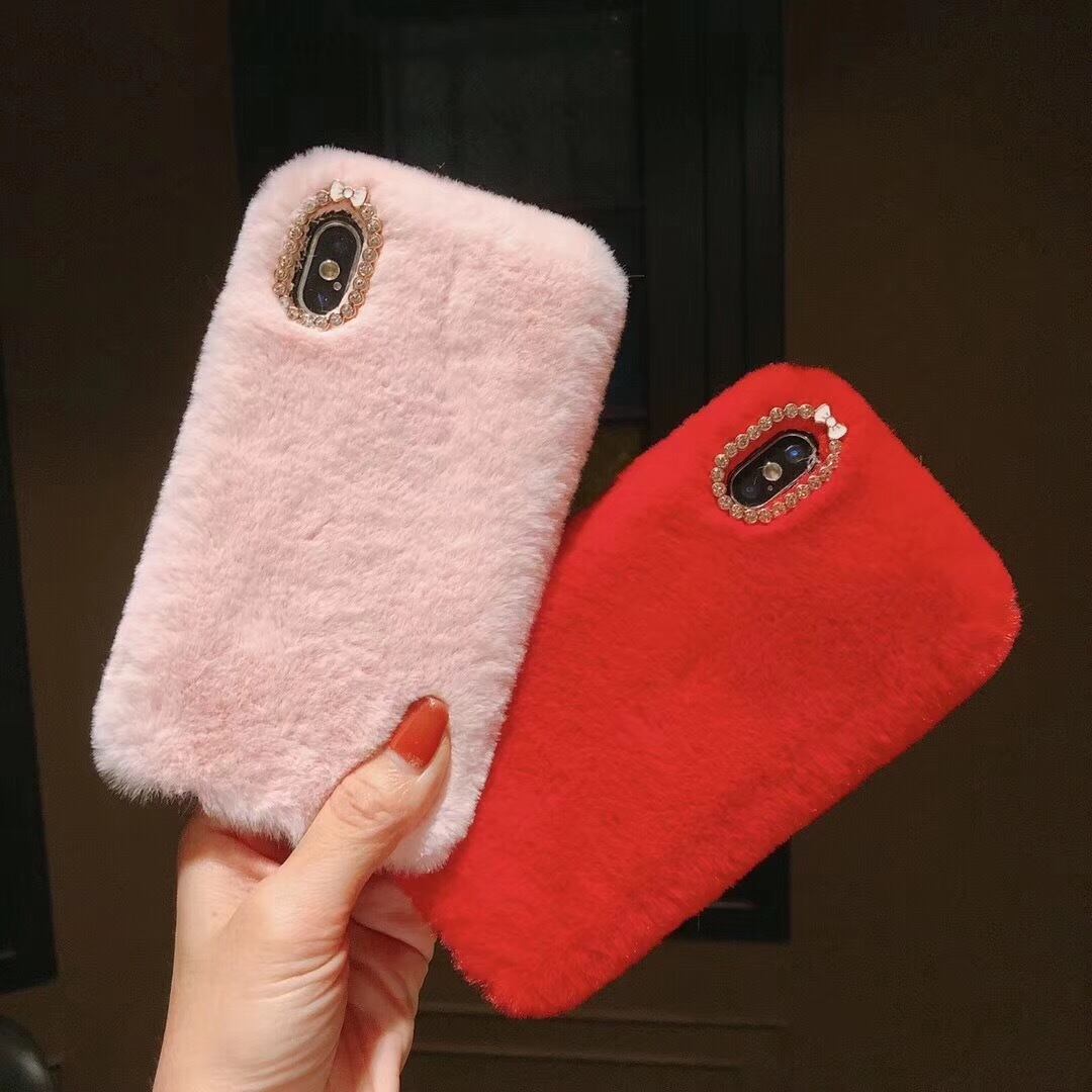 女子愛用 iphoneXS iphoneXケース 単色 フサフサ ビジュー風