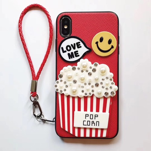 デコ iphoneXS/XR/Xケース 猫 ポップコーン 個性的 キラキラ★