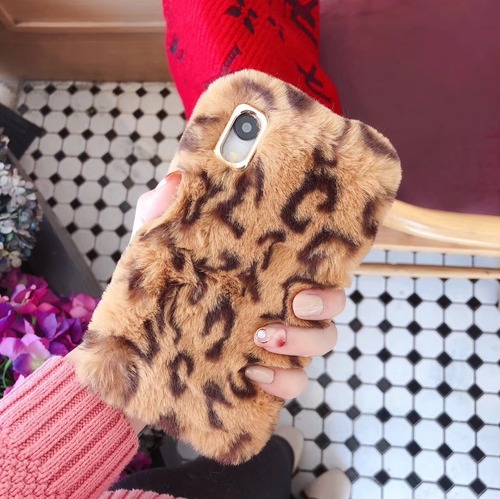 ふわふわ iphoneXS/X/8ケース 人気レオパード柄 冬毛モチーフ