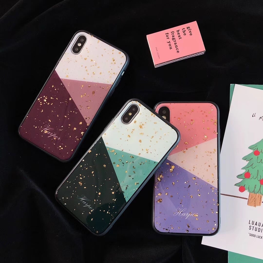 金運アップ!iphoneXS/XR/8ケース カラフル 透明感 金箔付き!