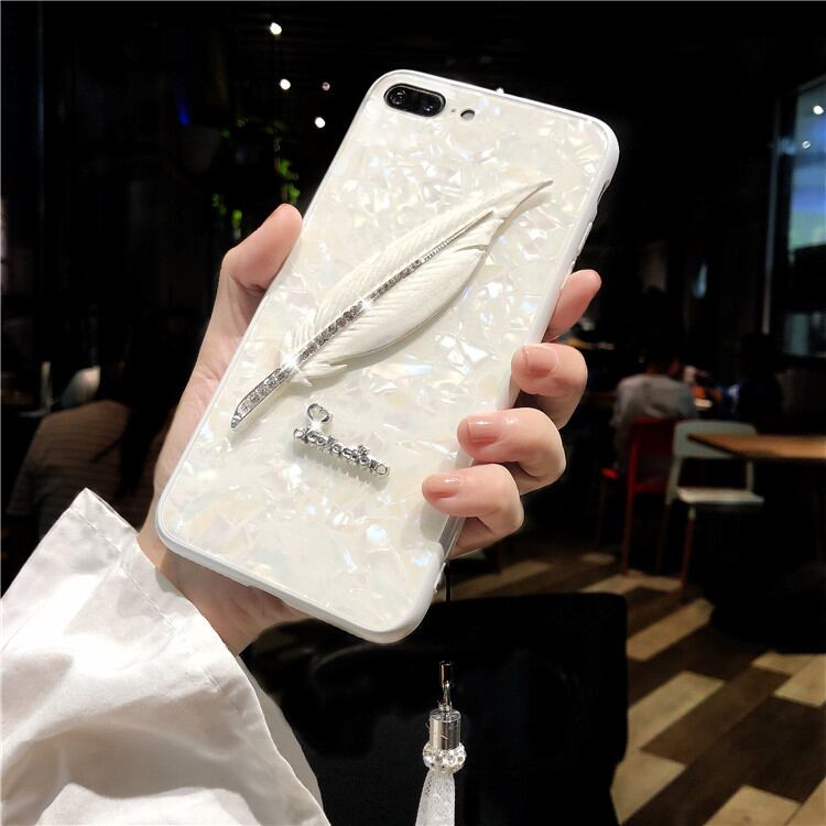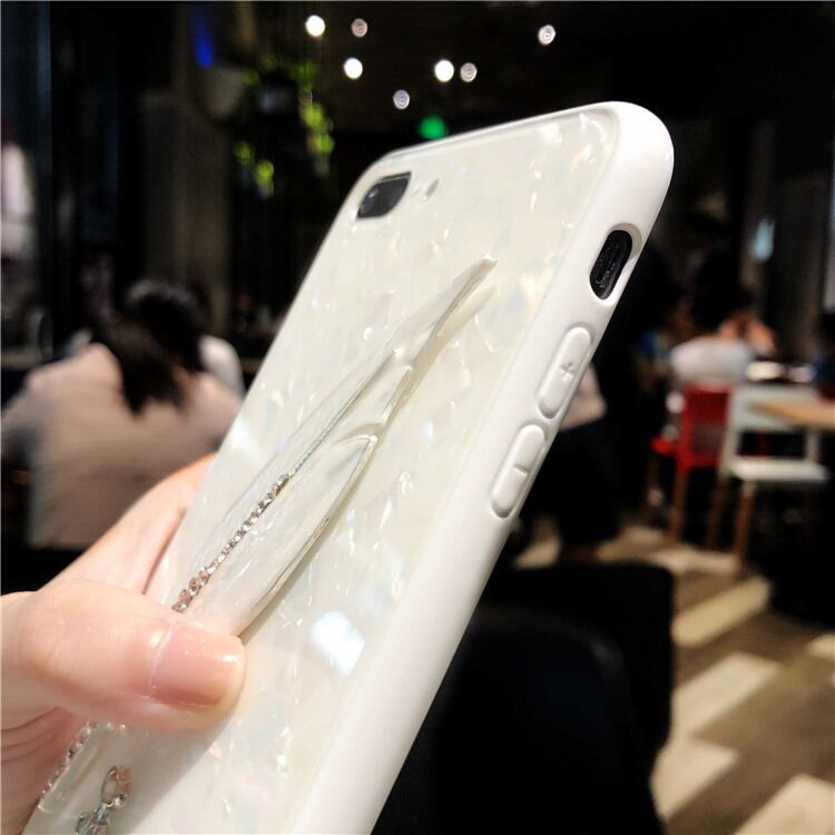 純白な羽 iphoneX/8/8plusケース キラキラ 真珠層モチーフ デコ