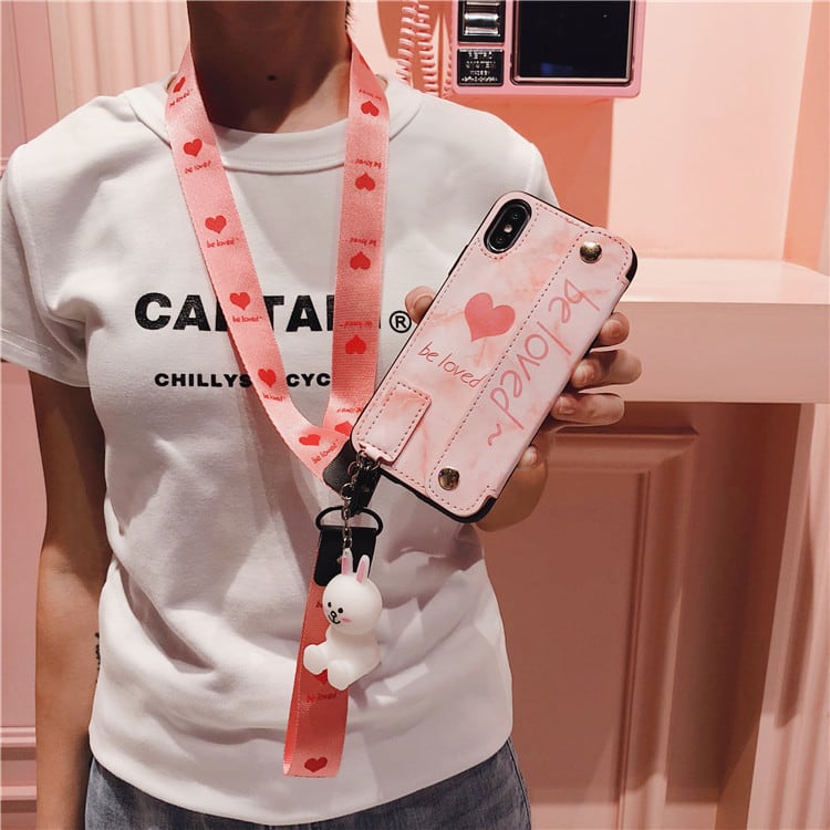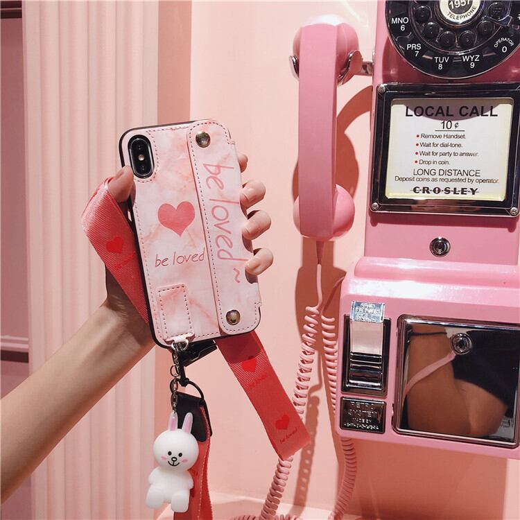 可愛いピンク iphoneXS Max/XRケース be loved 収納ポケット付き