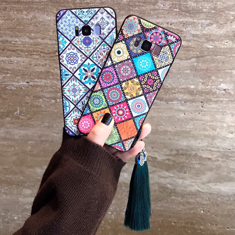 新品 Galaxy8plus/S9plusケース 民族風 タッセル付き オシャレ