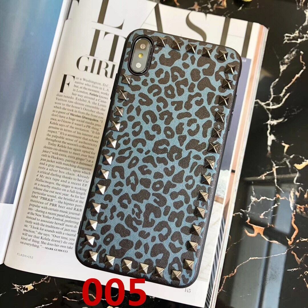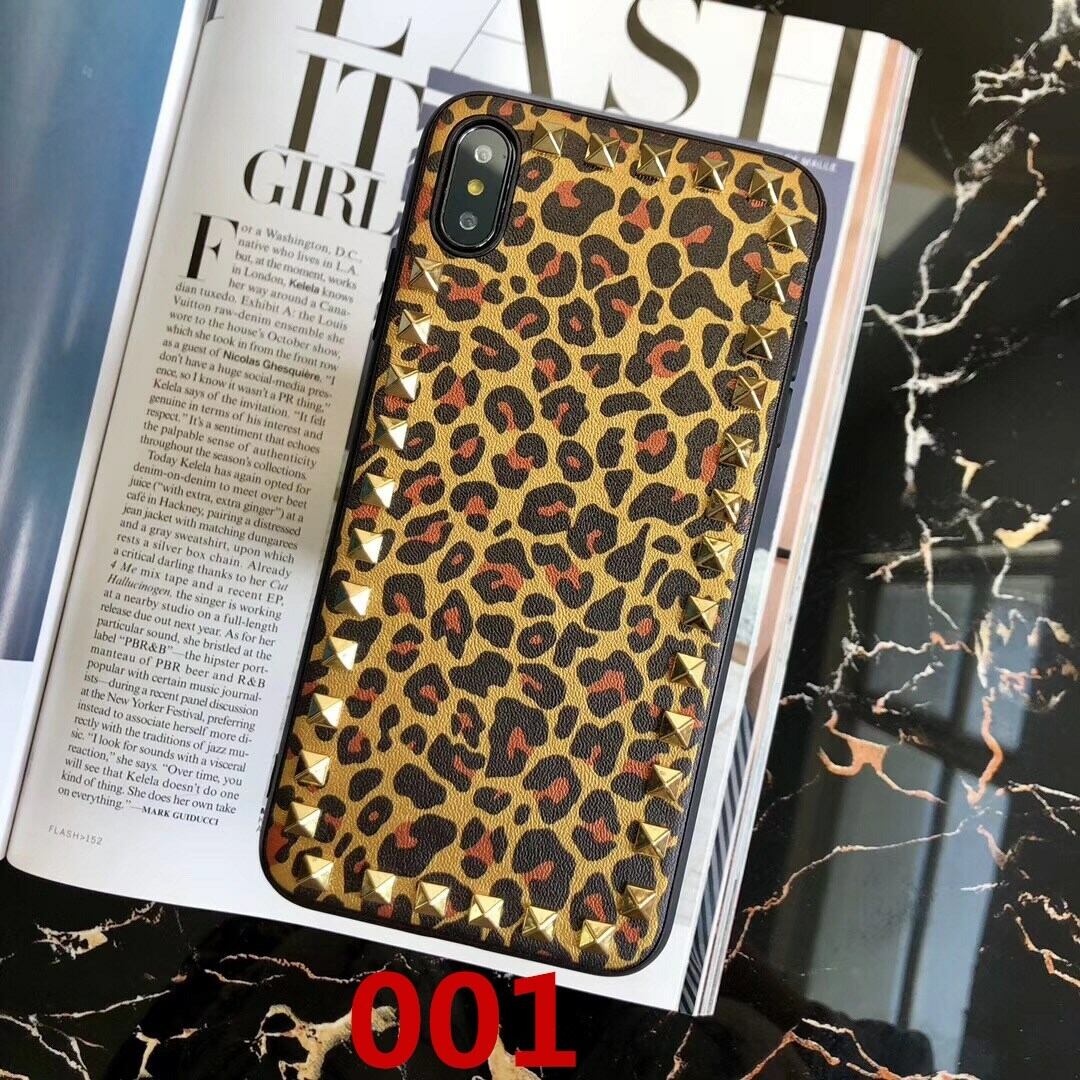 メタルスタッズ付き iphoneX/8ケース ヒョウ柄 フェイクレザー