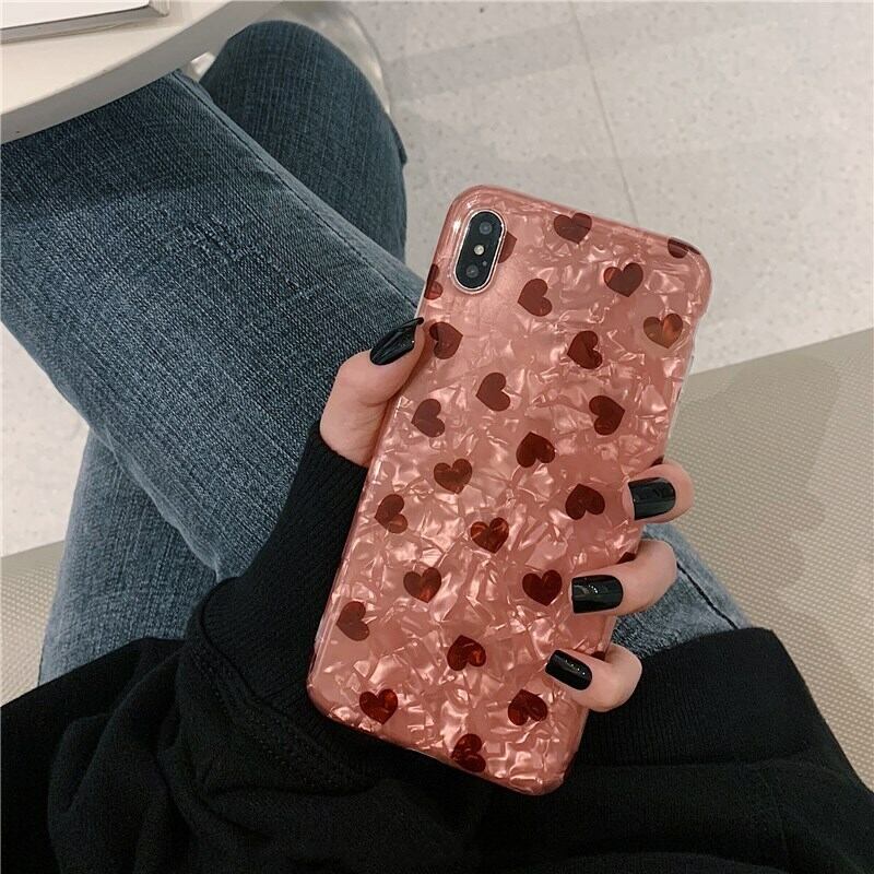 真珠層 iphone8/XSケース キラキラ 可愛い ミニハート ソフト