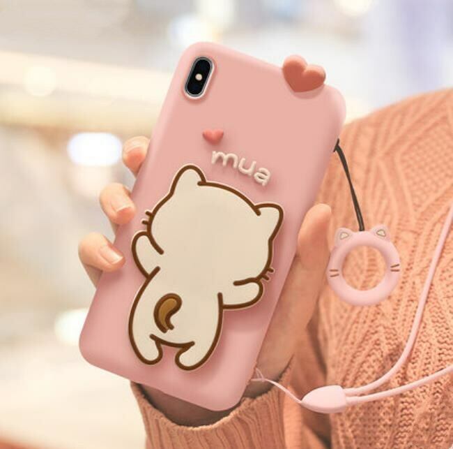 iphoneX/XSケース 可愛い 猫のキス mua♥ スタンド機能