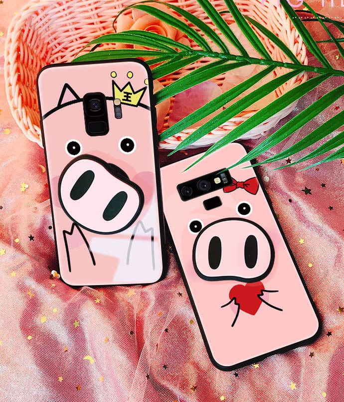 ブタ GalaxyS10+ケース カップル iphone対応 お鼻ポップソケット