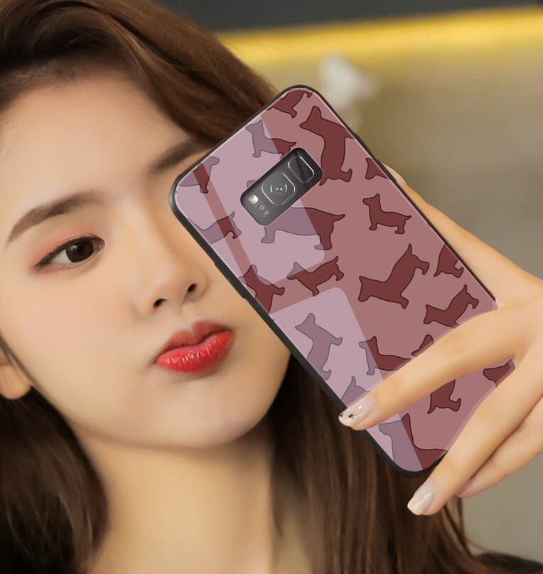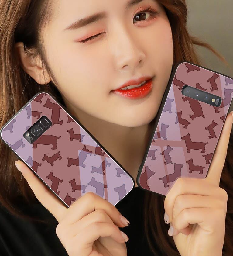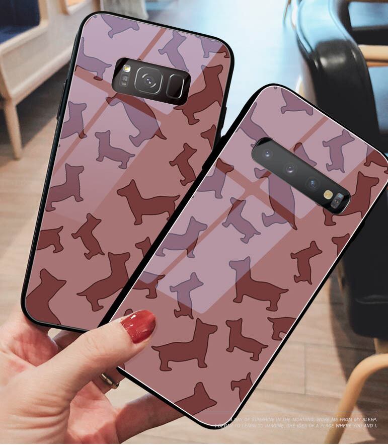 犬柄 iphone8/XSケース Galaxy対応 強化ガラス ビスケット風