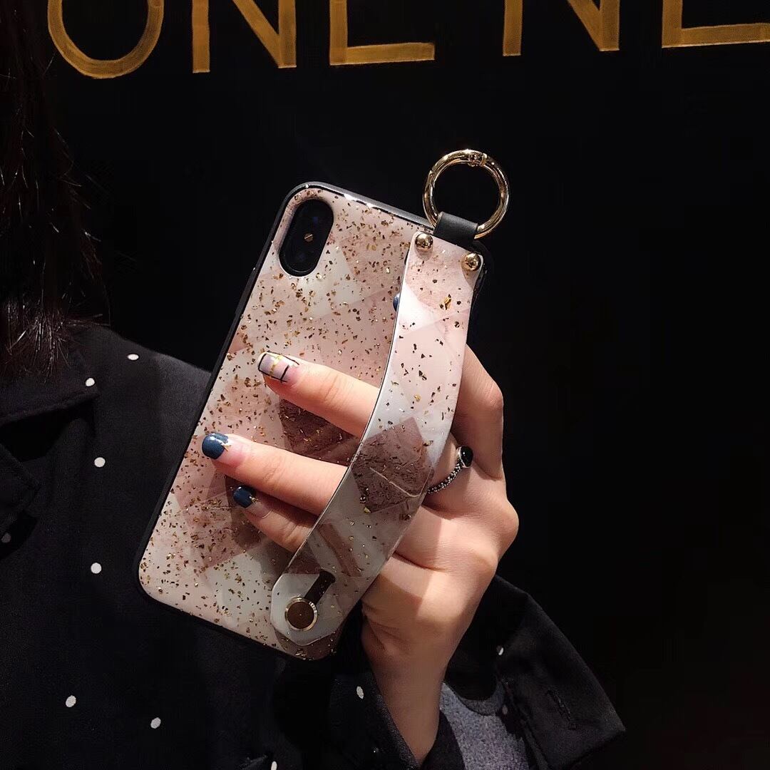 大理石柄 iPhone ベルト付きハードケース アイフォン XS/XR/XSMAX/8/8plus/7/7plus/6s 保護カバー 金箔 キラキラ 女子力UP♥日本未発売