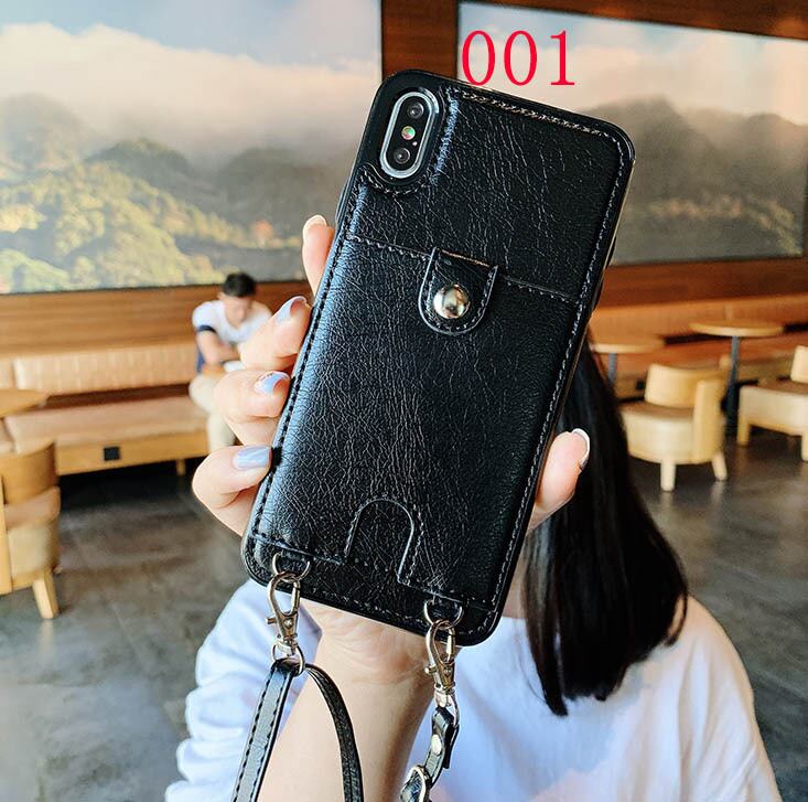 カード収納 iPhonexs iphonexr iphone8 iphone7plus レザーケース ネックストラップ付き アイフォン保護ケース レディース 全3色 おしゃれ 新着商品♡