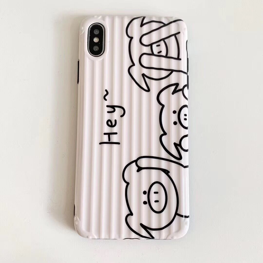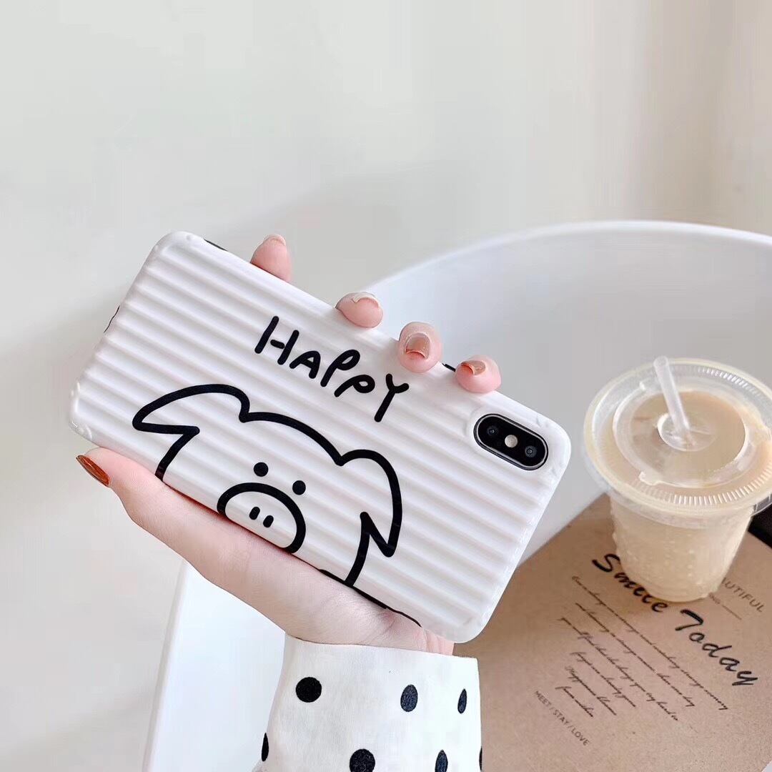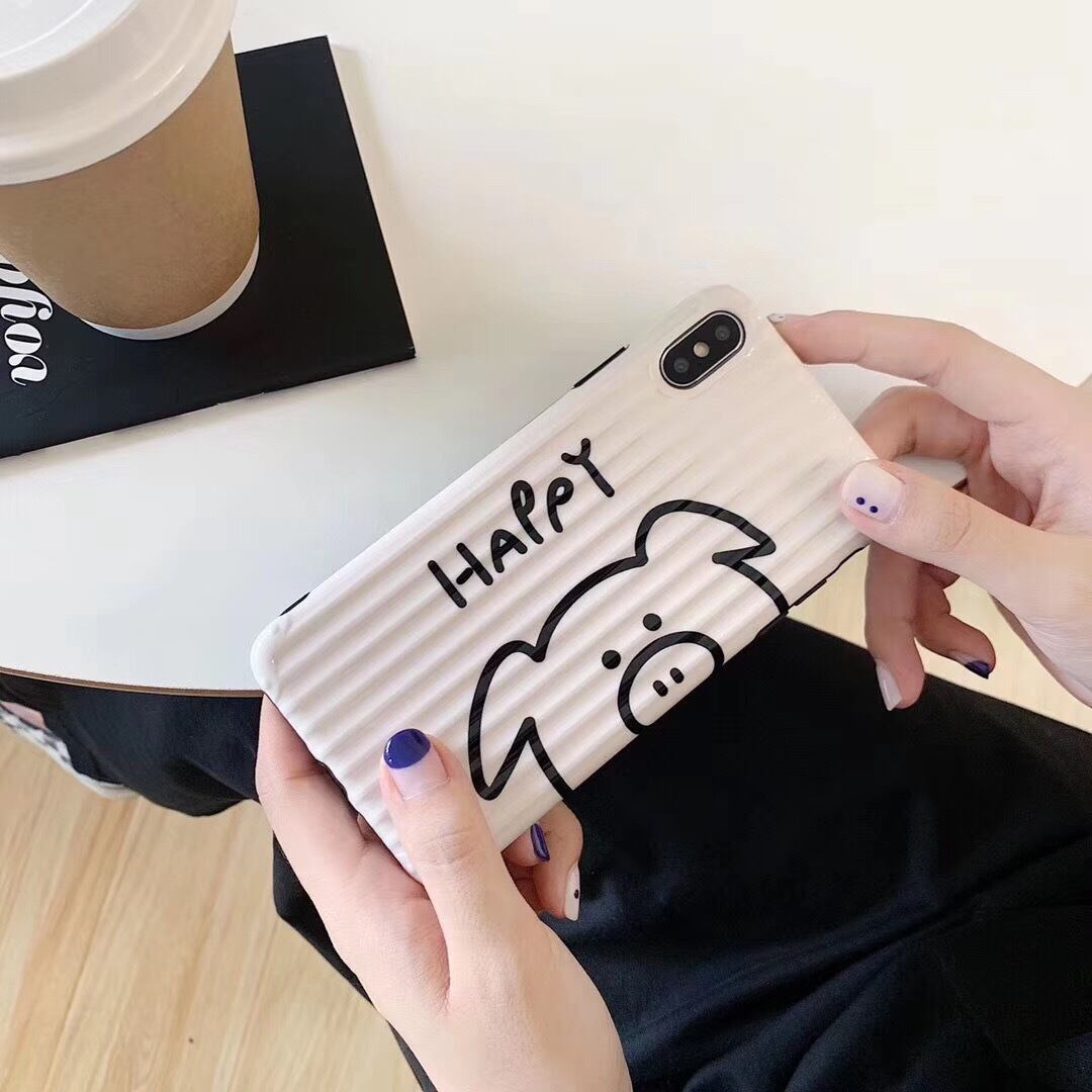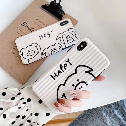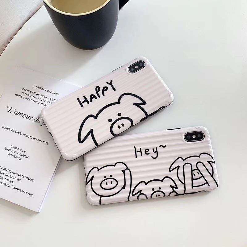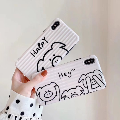「happy」「hey~」iPhone XR XS XsMax X 8 8plus 7 7plus 6s 6sPlus ケース キャラクター Pig ソフトケース ホワイト 可愛くて 女子 ペア揃い 新作♡
