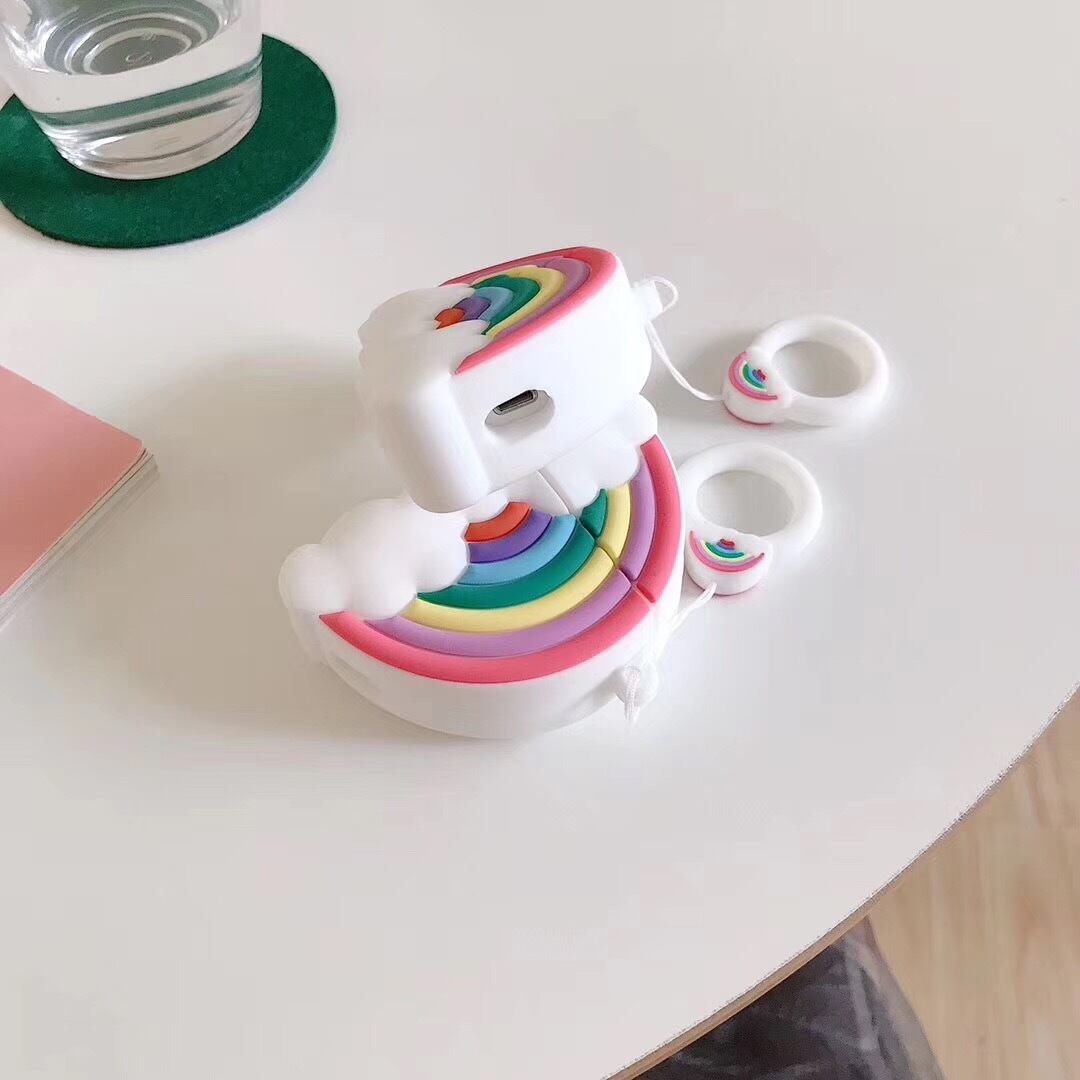 「並行輸入品」AirPods2ケース 虹 airpods保護カバー 立体 リング付き シリコン 可愛さUP♪