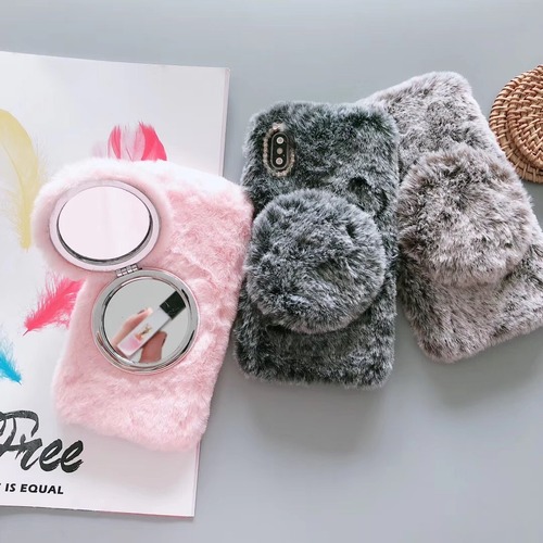 秋冬の新品☆iPhonexsケース iPhoenxrケース ミラー付き iPhone11 proケース もこもこ iPhone11/11pro maxカバー ふわふわ 全三色 可愛い 韓国女子の定番 おすすめ☆