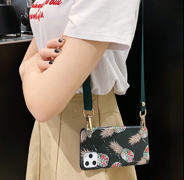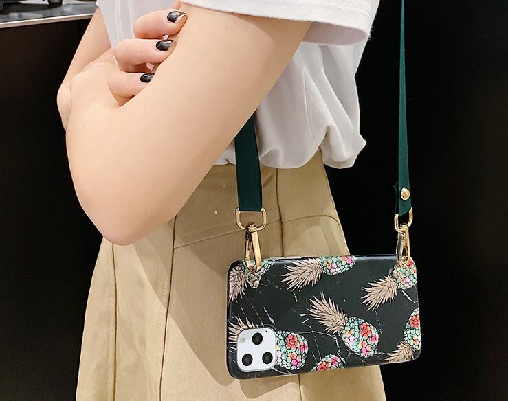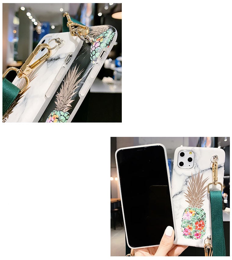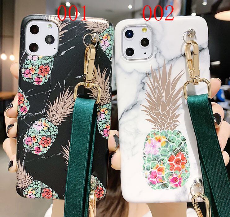 大理石柄 iPhoneショルダー付きケース パイナップルモチーフ iPhone11 Proケース iPhonexs xr xsmax x 8 8plus 7 7plus 6s 6splus 保護カバー 魅力 白 黒 芸能人の定番 並行輸入品 オススメ♪