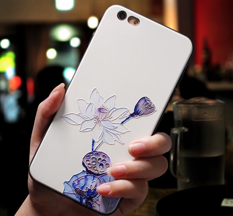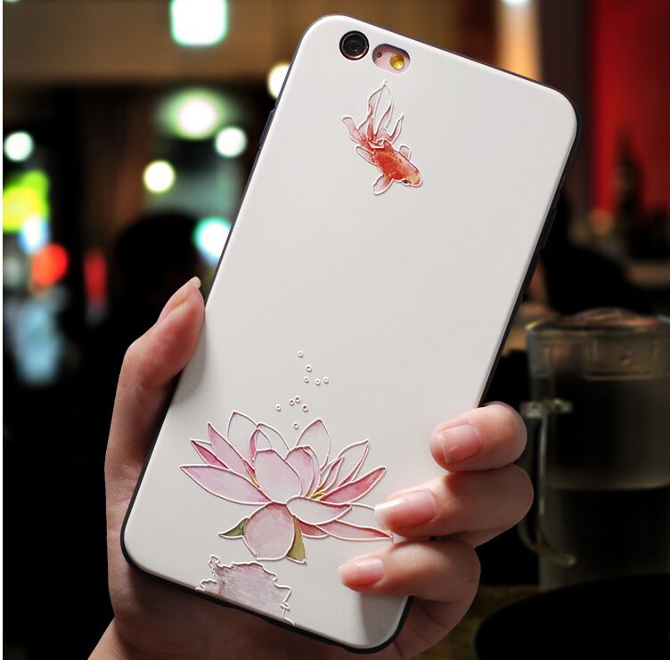 ハスの花 iPhone6s/7/8/xs/xrケース 浮き彫り 金魚 シック 2種類