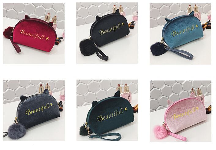 Beautifull☆化粧ポーチ コスメポーチ ボンボン付き 可愛い 6色