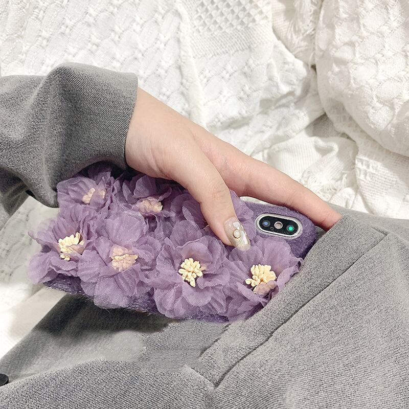 レースの花柄付き iPhone11 pro/xr/xs/8ケース パープル 冬の新作 魅力的✿お洒落