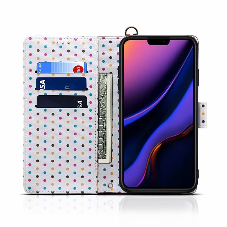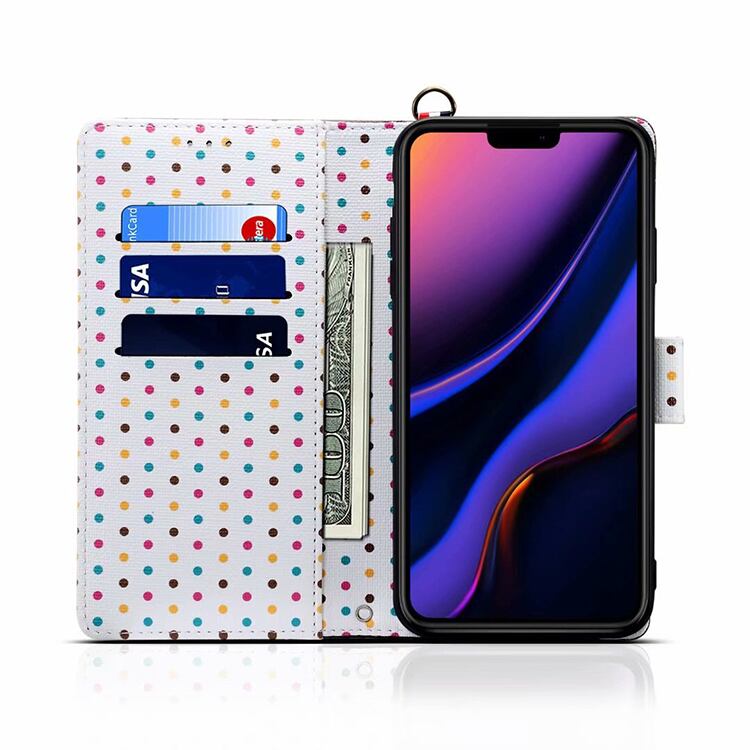 ネックストラップ付き iPhone11/xr/xs/8ケース 手帳 ドット柄 レディース 新品♪