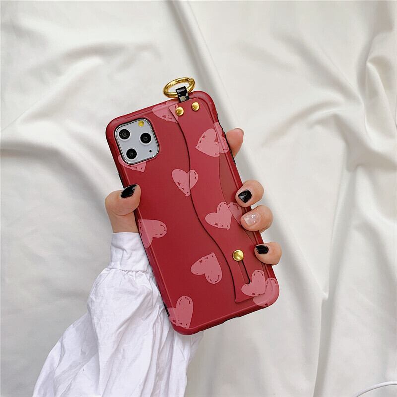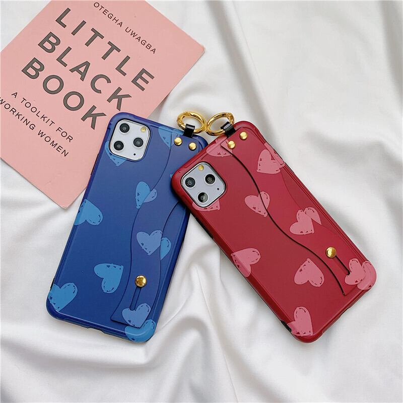 可愛い iPhone11 Proケース ハート iPhone11 xs xr 8 8Plusケース ベルト付き 2カラー お洒落♥
