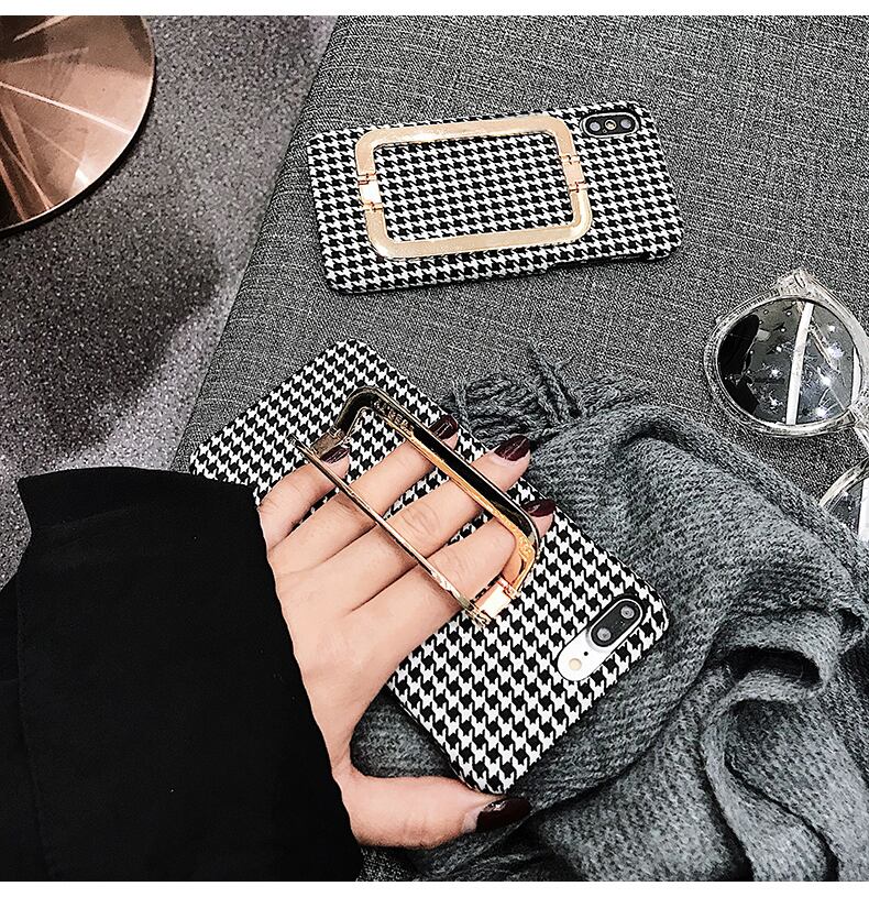 千鳥格子 iPhone8 XS XR 11 11Proケース 金属ベルト付き お洒落 レディース 大人 センスUP♪