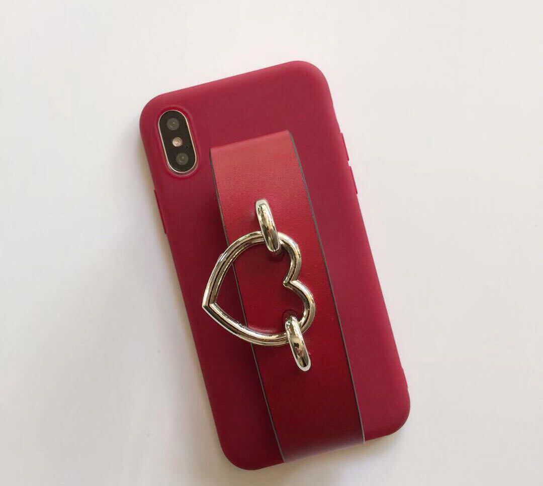 ハートモチーフ 革ベルト付 iPhone8/xs/xr/11proケース 赤 大人「日本未発売」