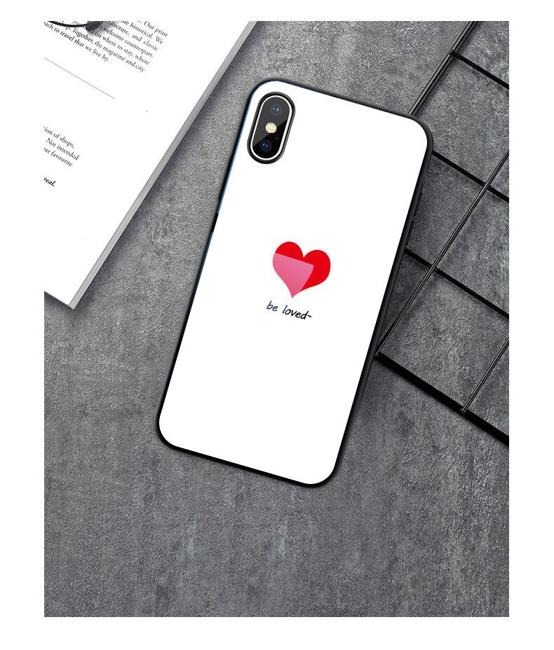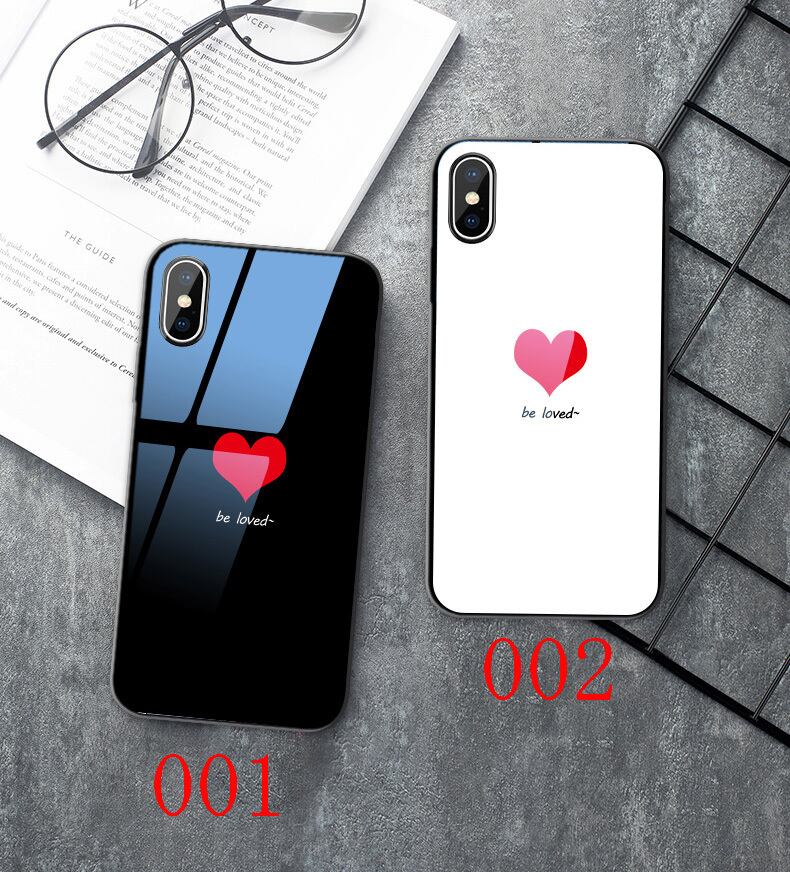 激安☆"Be Loved" iPhoneXS/XR/11Proケース GalaxyS10/Note9/S9+ケース 強化ガラスケース ミニハートデザイン 白 黒 ペア用 シンプル 新品発売♪