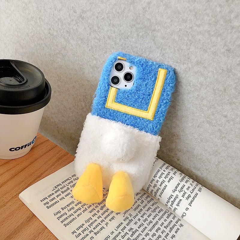 縫いぐるみ風 ダック iPhone 11Pro/11/XS/XR/8可愛いケース ふわふわ 女子力UP♡