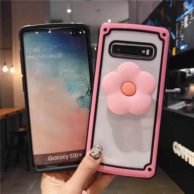 花柄 ポップソケッツ付☆Galaxy S10+ S10 Note9 クリアケース♪