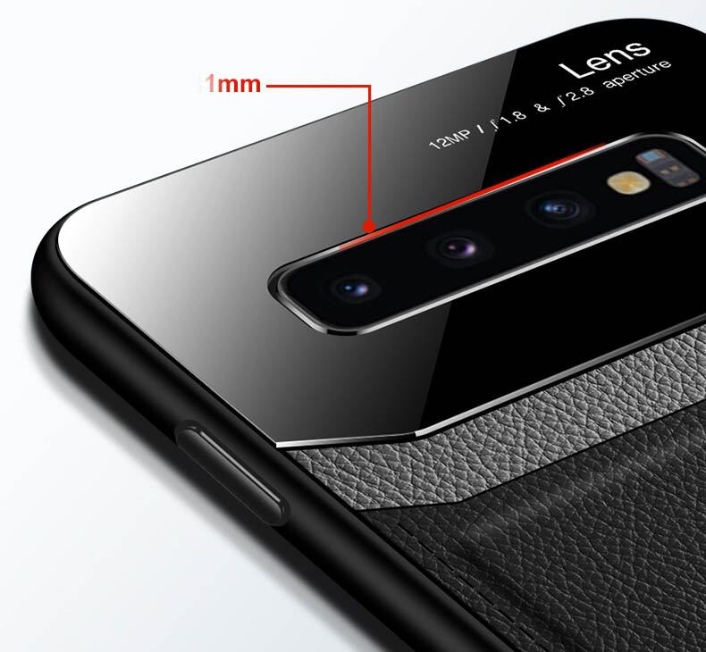 上品★Galaxy S10+ S10 S9+ケース★カメラ部分強化ガラス付 革♪