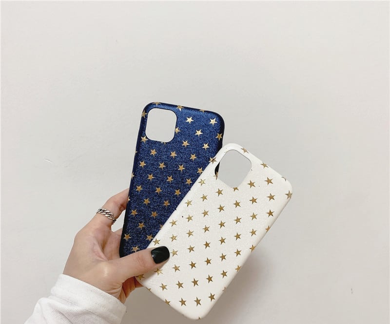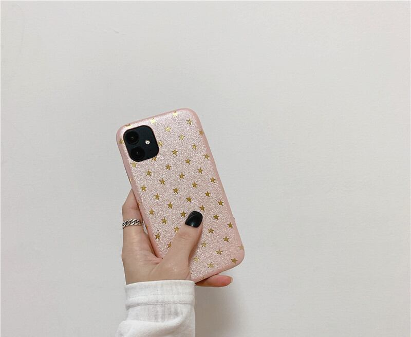 iPhoneの全貌を見せつつキラキラとしたゴールド星が施されている、