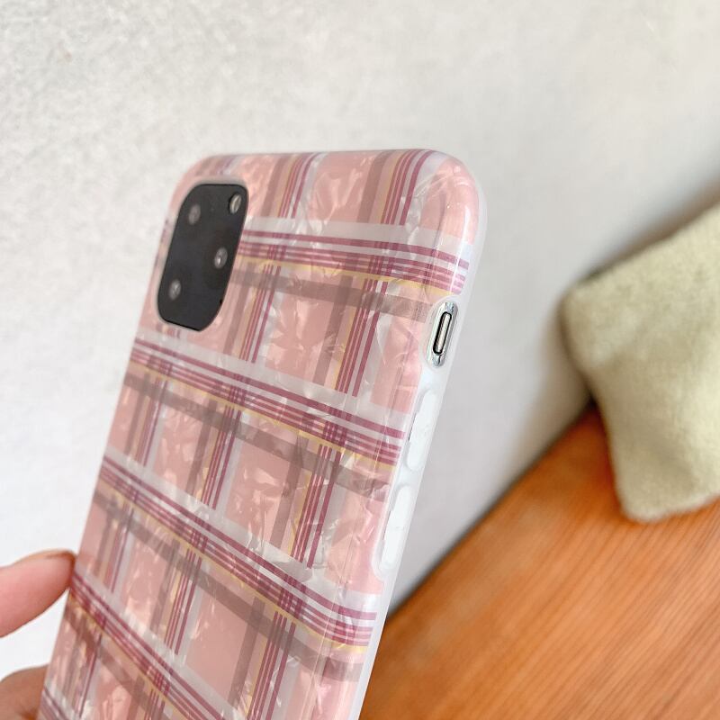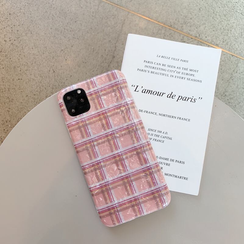 夏にピッタリ★貝殻 iPhoneケース チェック柄 ゴージャス感♪