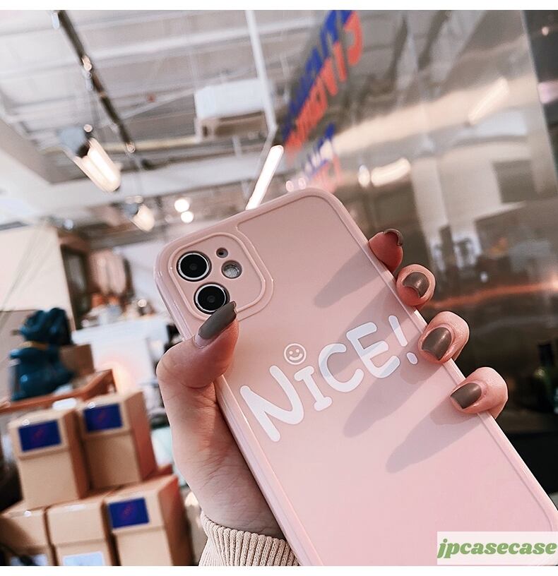 ”NICE!”文字 iPhone12 Pro/11 Pro/XS/8ケース 光沢 笑顔 新作