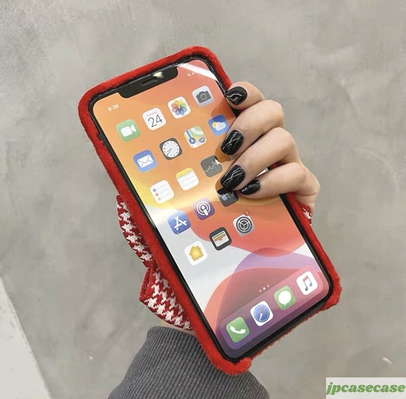 ☆限定☆千鳥格子リボン付き iPhone 12pro/11pro/XS/8ケース 赤