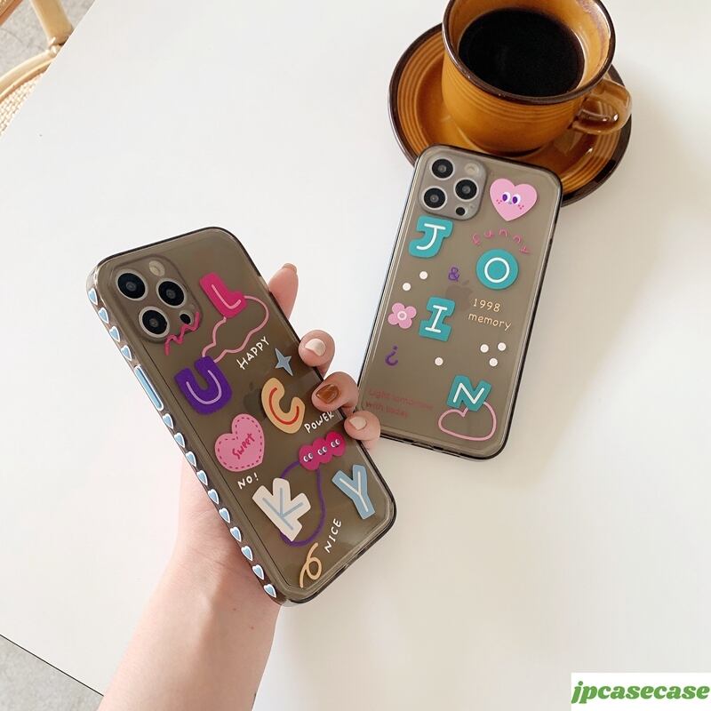 iPhone 12Pro 12 11Pro XS XR 8ケース 透明ブラック ハート 二色