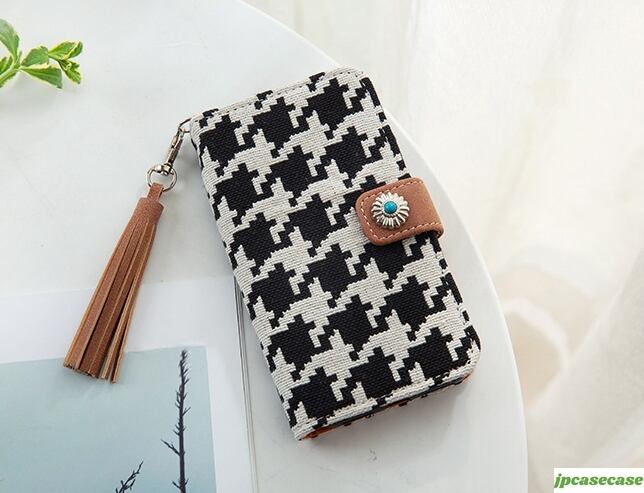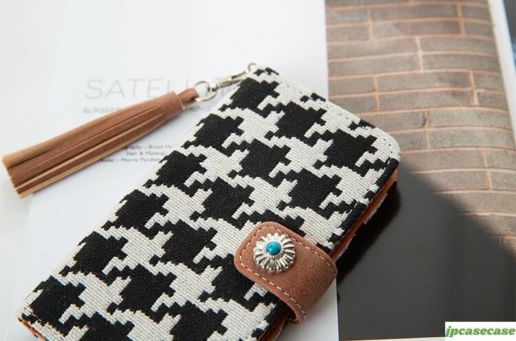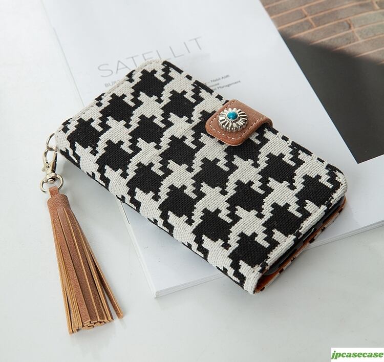千鳥格子☆iPhone 12Pro/12/11Pro/XSケース 手帳 大人かわいい♪