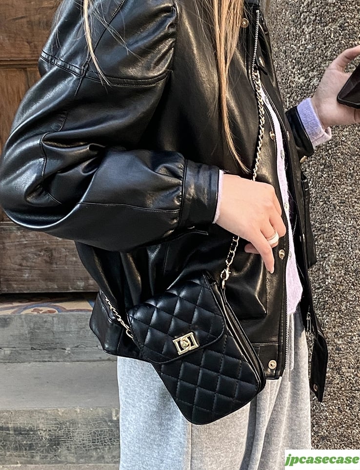 スマホポーチ お財布ポシェット 斜めがけミニバッグ 黒 シック♪