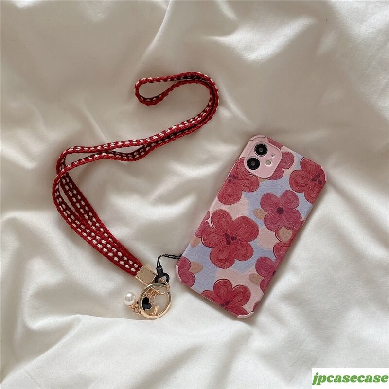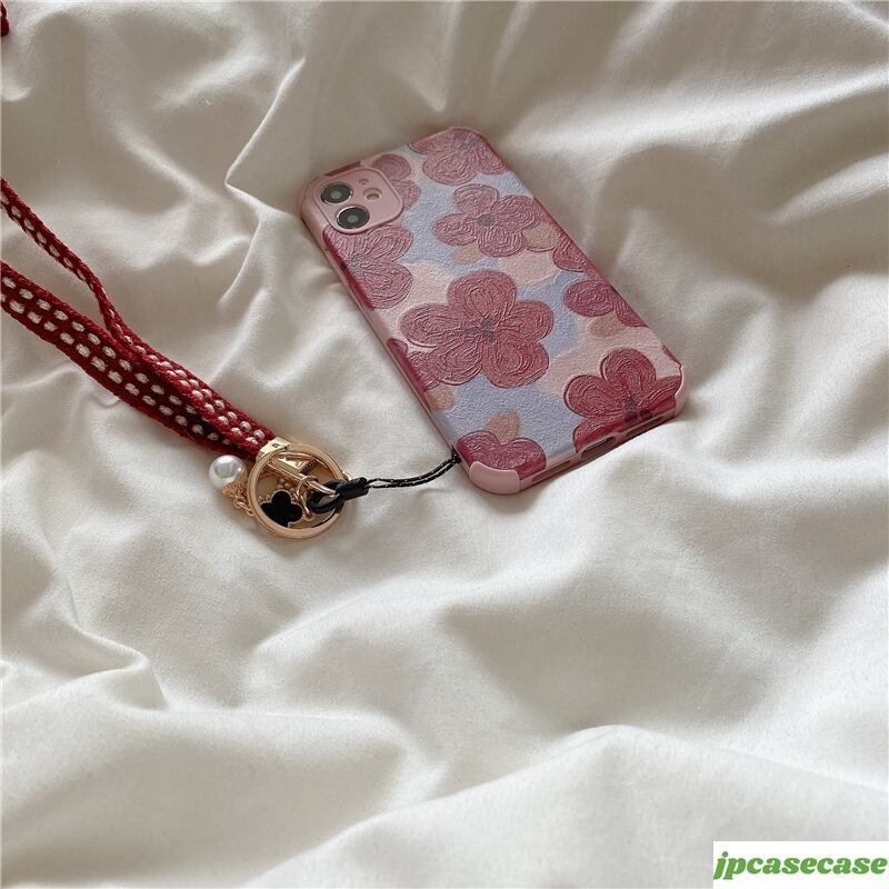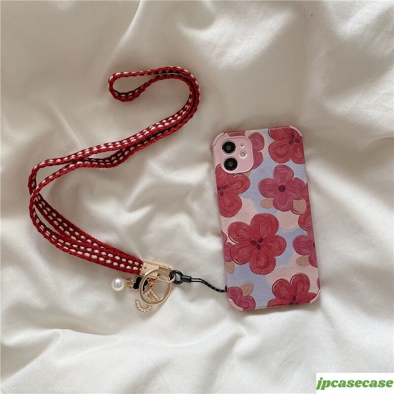 【税関込】iPhoneケース 12ProMax~7カバー 花柄 ストラップ付き
